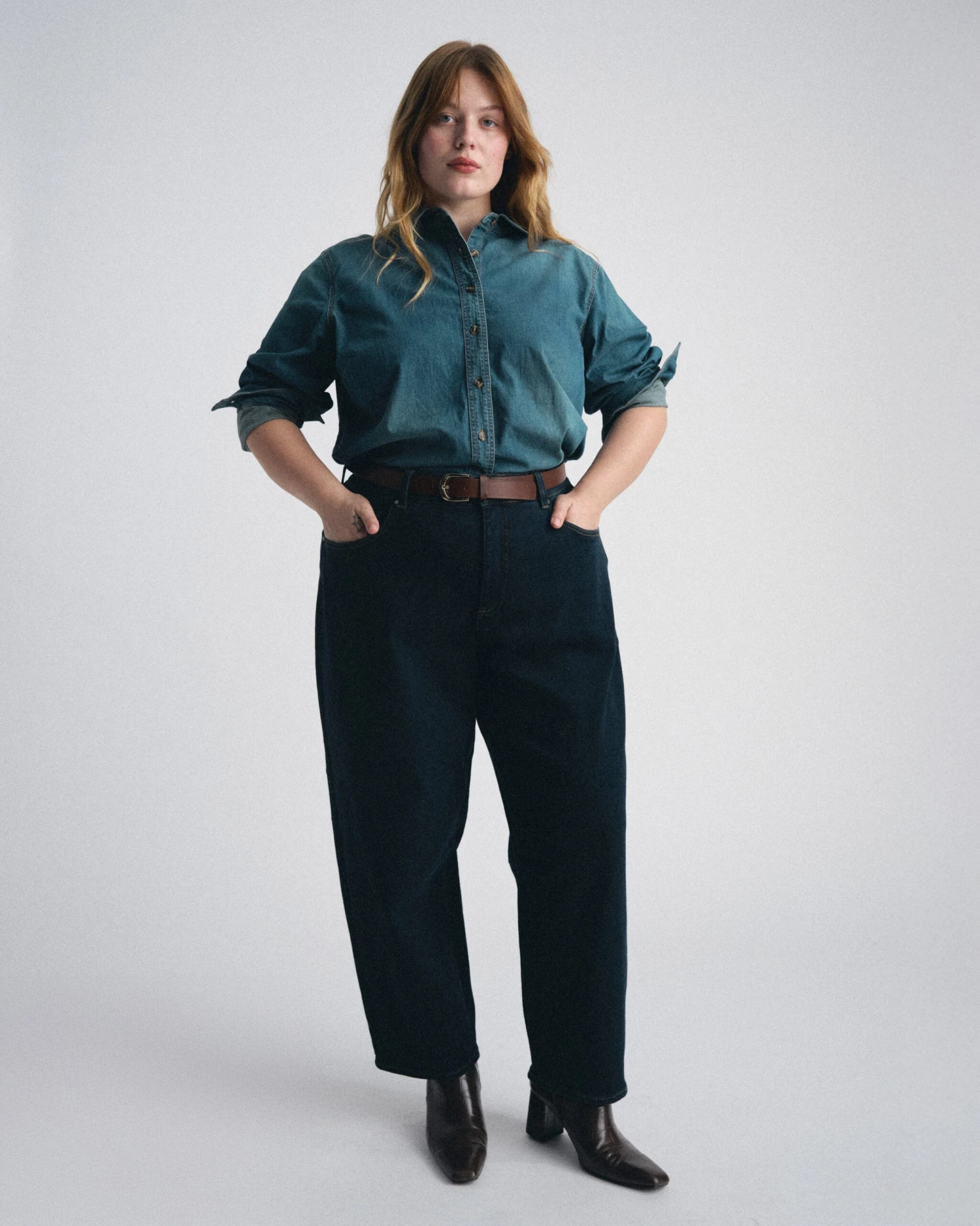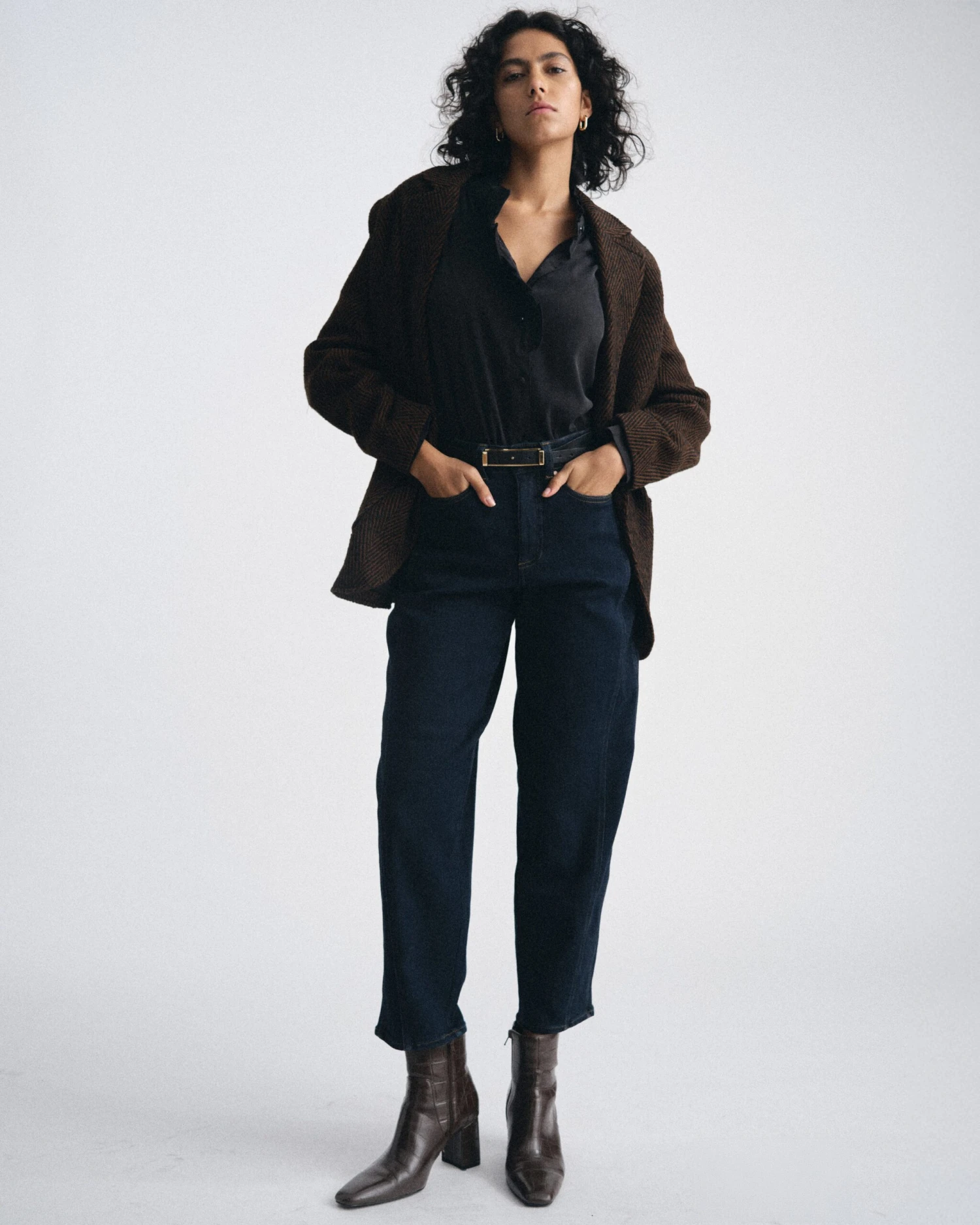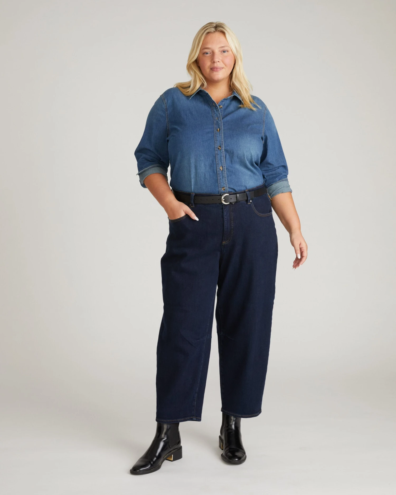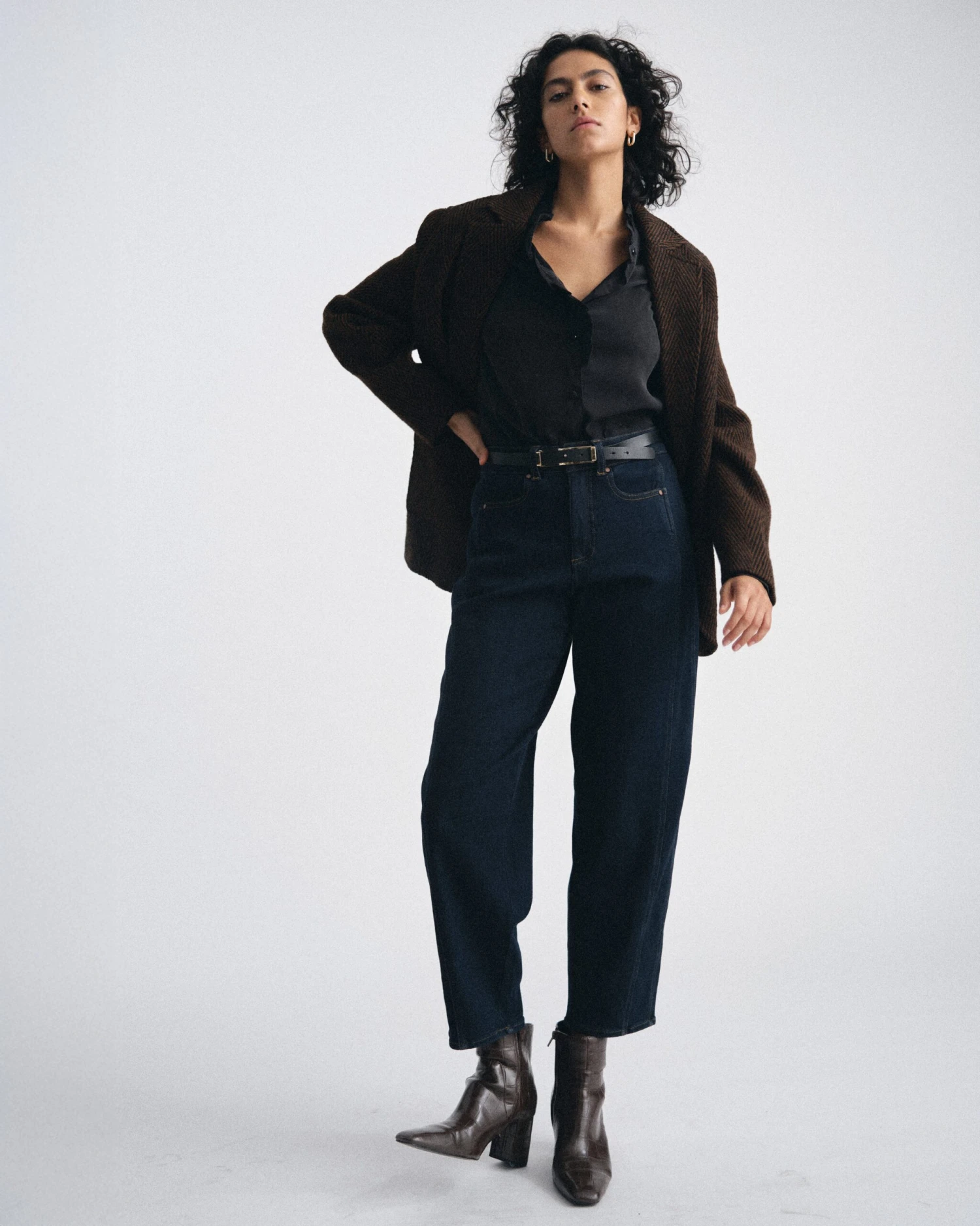 - Architectural Barrel Leg: The contemporary curved silhouette provides a relaxed yet structured look that adds instant character to any ensemble.