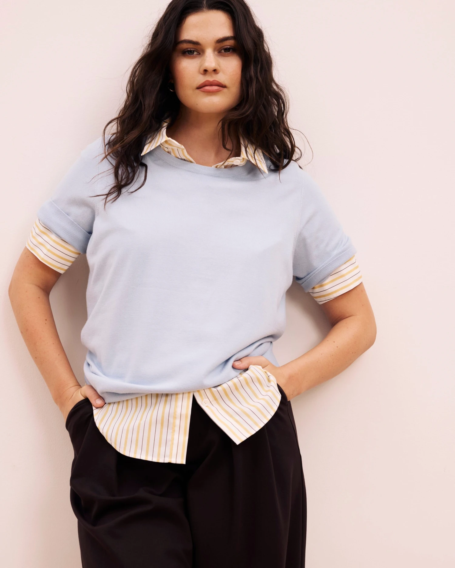 - Seamless Layering: The slim, non-bulky design allows you to layer it effortlessly under structured blazers or cardigans.