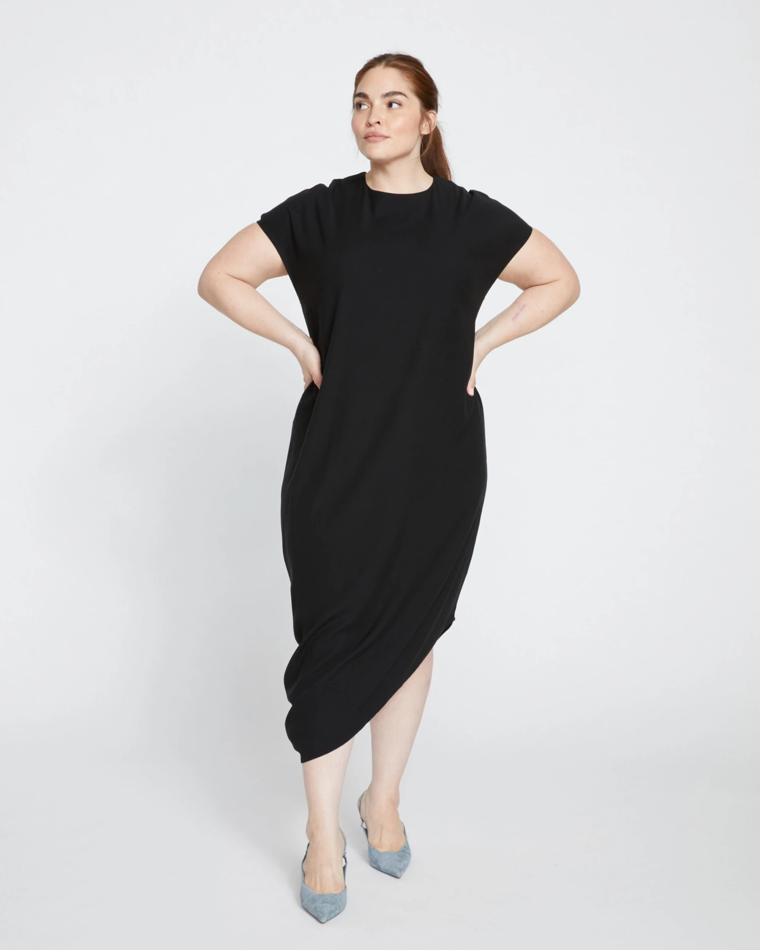 - Design: Asymmetrical hem with integrated ruching detail