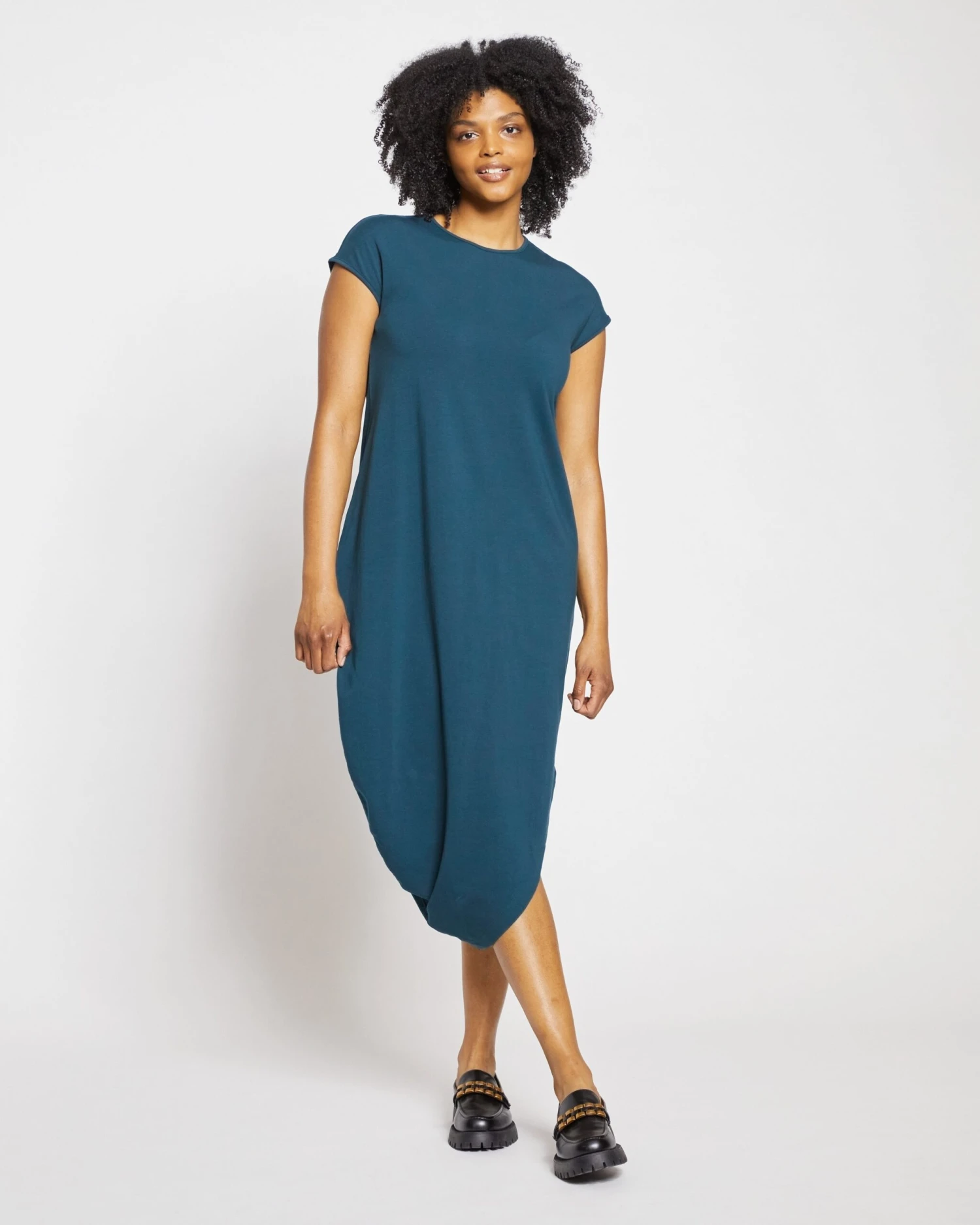 Experience the ultimate in refined comfort with the Geneva Asymmetrical Cotton Dress in Deep Sea. This signature piece from the Geneva collection combines the luxurious feel of high-grade Peruvian cotton with a modern, architectural silhouette, offering a sophisticated look that transitions effortlessly from day to night.