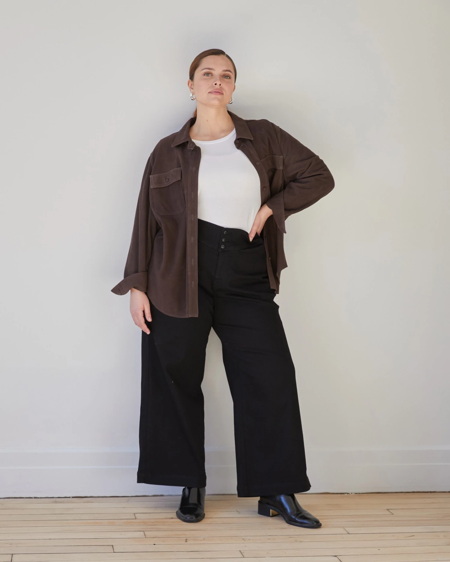 - Elongating Silhouette: The ultra-high rise combined with a wide-leg cut creates the illusion of longer legs for a chic, tall appearance.