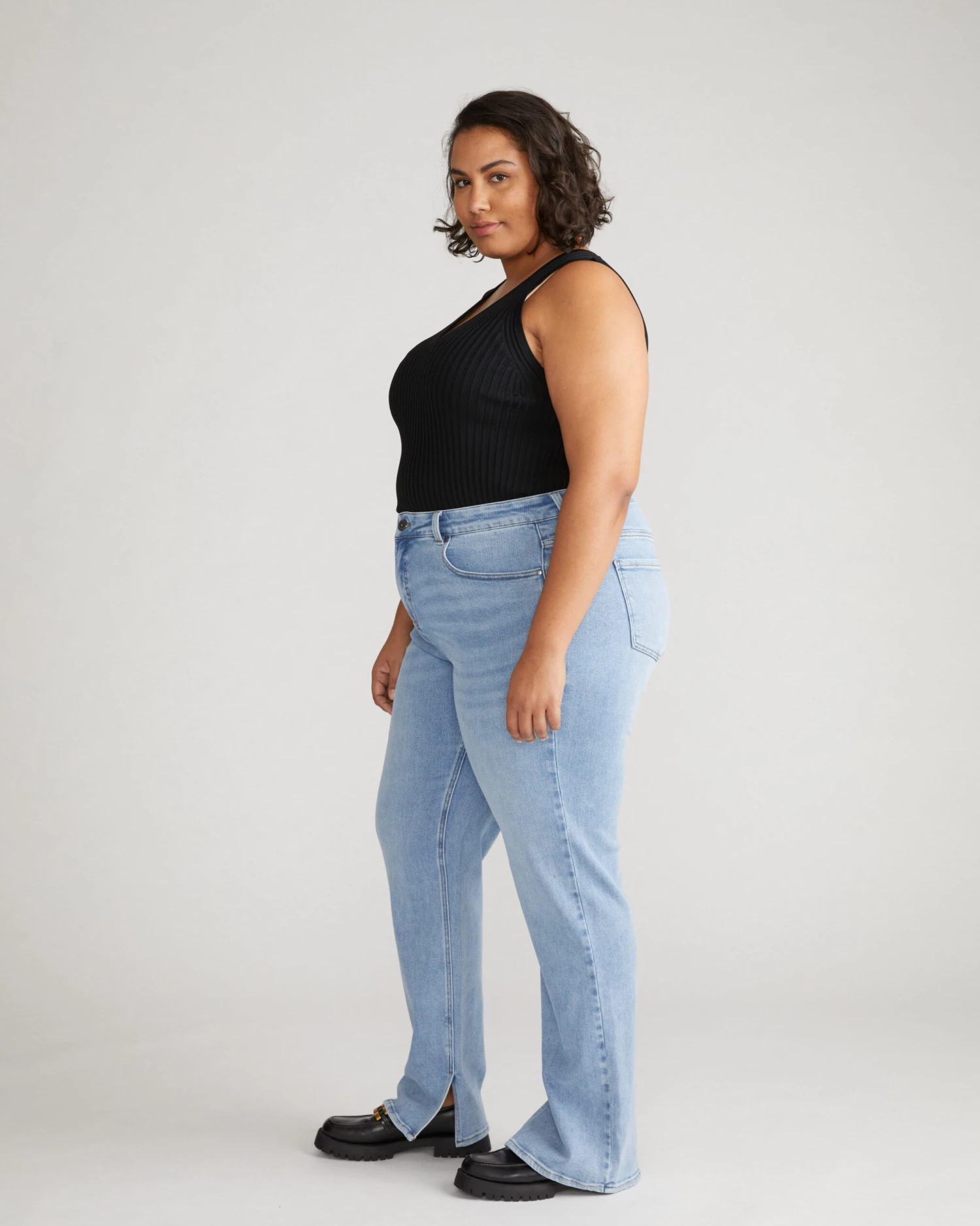 Elevate your everyday denim with a pair that blends classic comfort with modern flair. Designed for those who want more than just a standard straight-leg fit, these high-rise jeans feature a stylish split hem that perfectly showcases your favorite footwear, from sleek booties to casual sneakers.