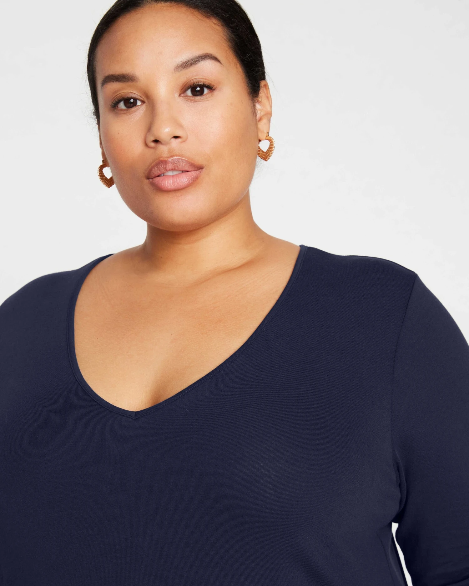 - Sophisticated V-Neckline: A narrow V-neck design adds a contemporary touch to the classic long-sleeve style for versatile wear.