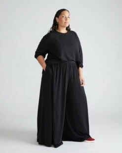 Isadora Wide Leg Lounge Pants – Black Flowy High-Waisted Trousers
