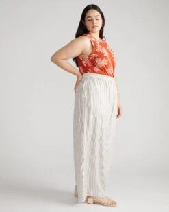 Lightweight Striped Rayon Voile Pants – White & Beige Summer Trousers