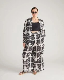 Lightweight Ink Bloom Rayon Voile Wide Leg Pants