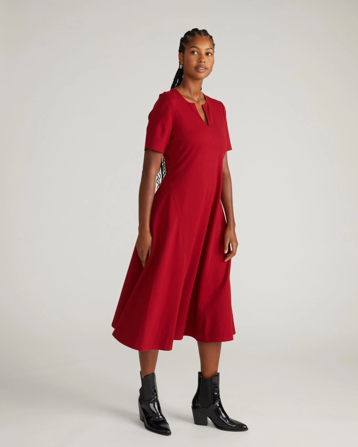 - Flattering A-Line Cut: The silhouette gently skims the body and features a notched front neckline for a sophisticated, modern touch.