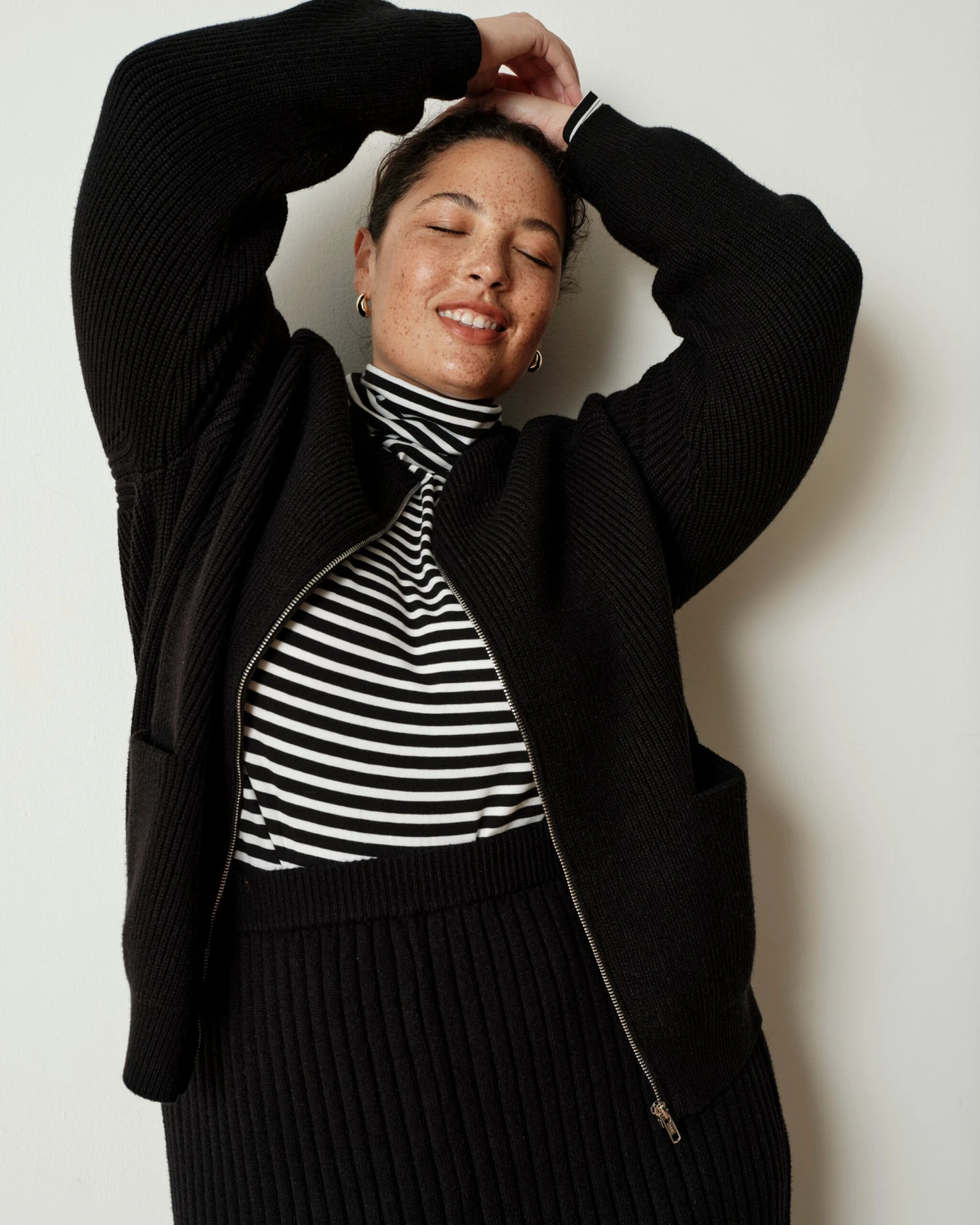 Looking for the classic look of wool without the uncomfortable itch? Our Better-Than-Wool Zip Cardigan is the ultimate solution for those who prioritize both style and comfort. This versatile black sweater provides superior warmth and a premium feel, making it an essential addition to your year-round wardrobe.