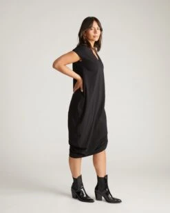 Breathable Peruvian Cotton V-Neck Dress – Relaxed Everyday Black Dress