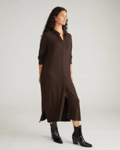 Sally Liquid Jersey Shirt Dress – Espresso