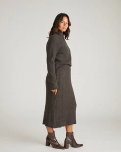Wrap Neck Sweater in Graphite – Cozy Knit Pullover for Women