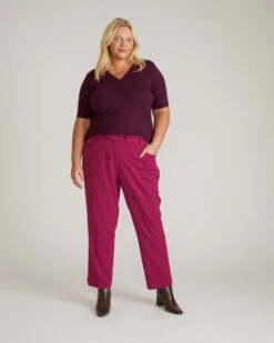 Women’s V-Neck Pima Cotton Stovepipe Sleeve Tee – Gamay