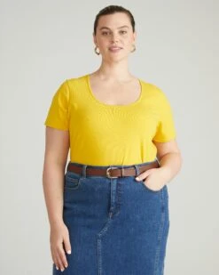 Yellow Scoop Neck Tee – Premium Stretch Cotton Slim Fit Basic Top