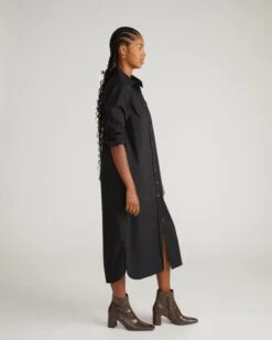 Odeon Black Stretch Poplin Shirtdress – Oversized Luxury Fit