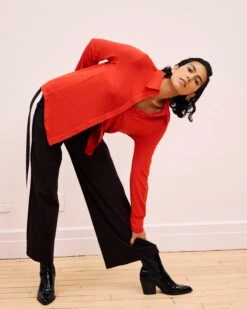 Stephanie Wide Leg Stripe Ponte Pants 30 Inch – Black/Paeonia/Sanguinello