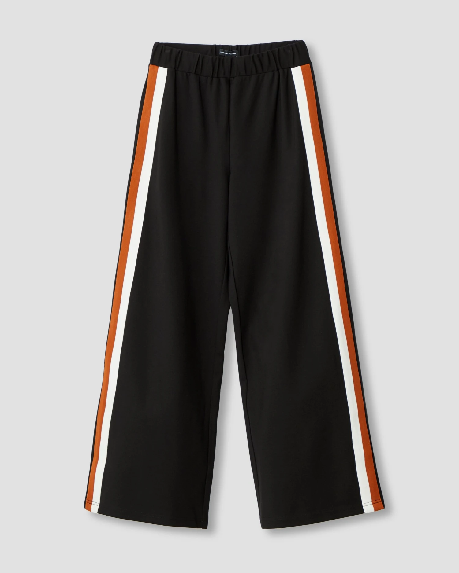 Premium wide leg ponte pants that are a little sporty and very versatile. Featuring a two-tone stripe down the sides, these pull-on pants are sleek and stretchy. The ultimate combination of style & comfort.