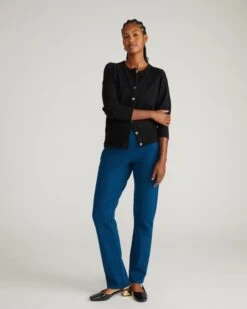 Savvy Fine Knit Crewneck Cardigan – Black Layering Staple